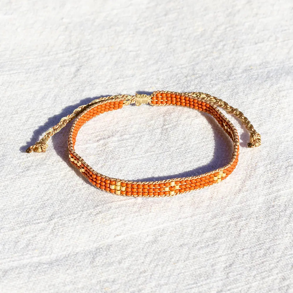 Schitterend geweven armbandje. De verschillende kralen hebben elk een unieke afwerking en combineren daardoor heel mooi.