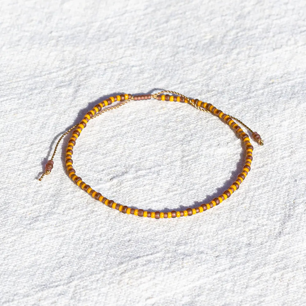Al onze armbandjes zijn ongeveer 16 centimeter lang en je kunt ze omdoen door de touwtjes uit en in elkaar te schuiven. In principe is het dus ‘one size fits all’.