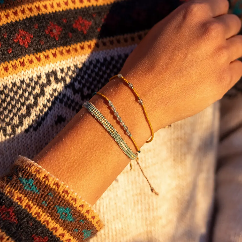 Al onze armbandjes zijn ongeveer 16 centimeter lang en je kunt ze omdoen door de touwtjes uit en in elkaar te schuiven. In principe is het dus ‘one size fits all’.