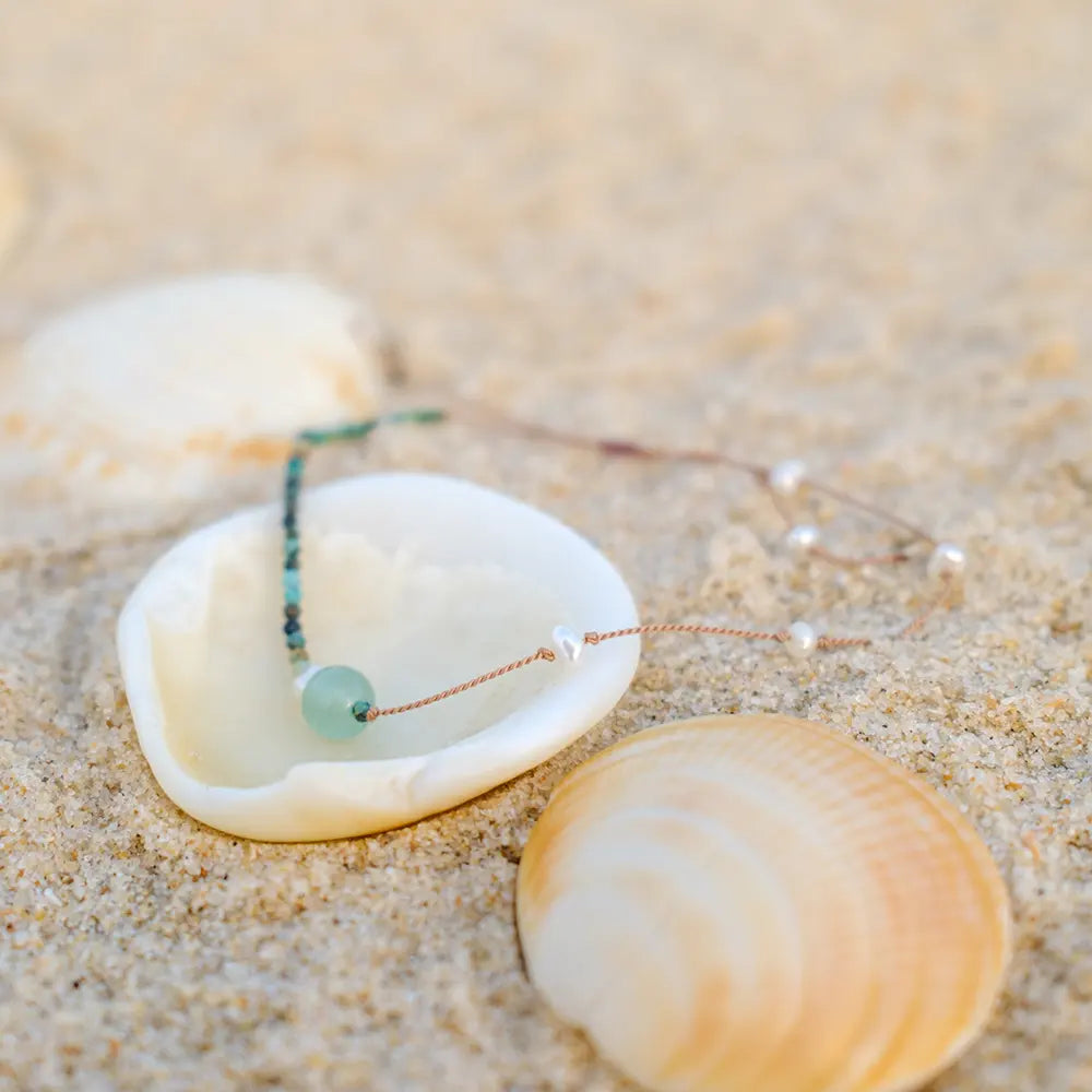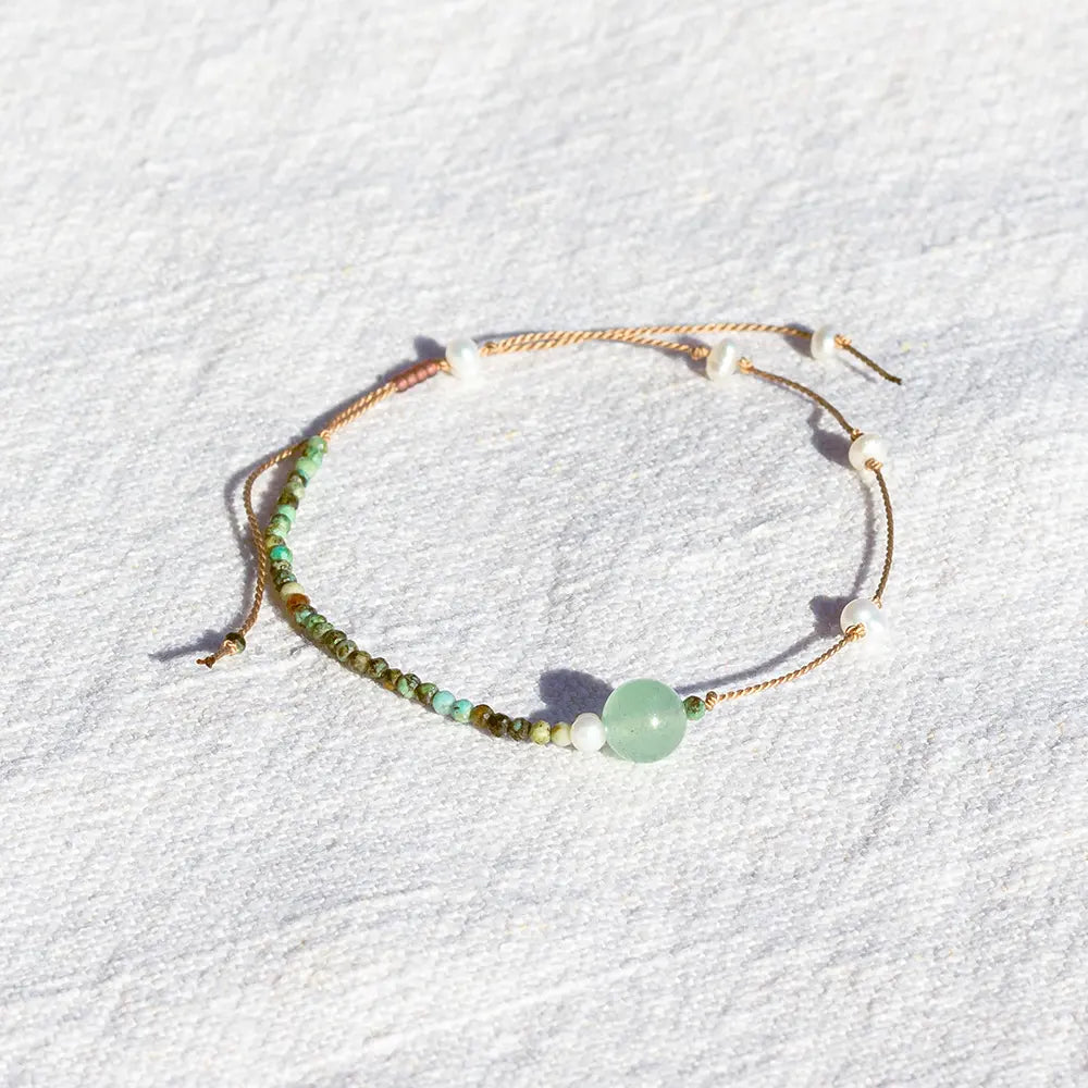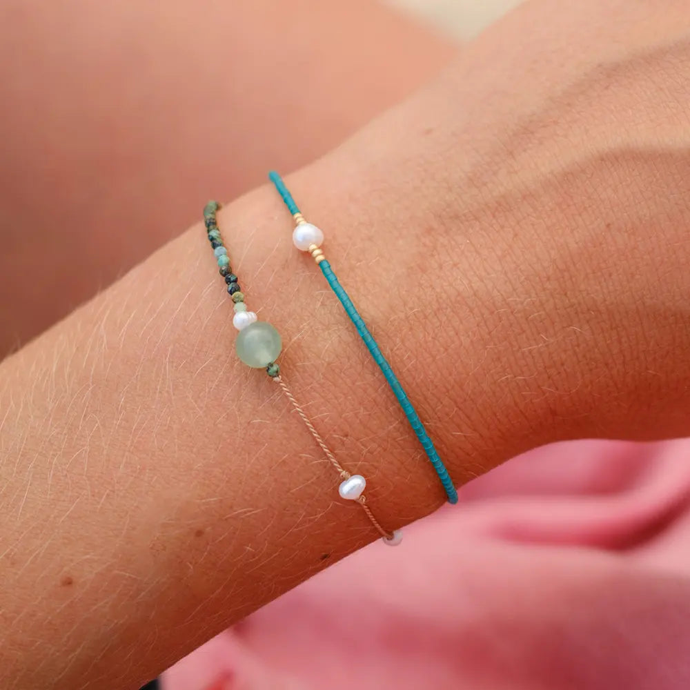 Asymmetrisch en speels. Een combinatie van verschillende soorten kralen maakt deze armband echt uniek.