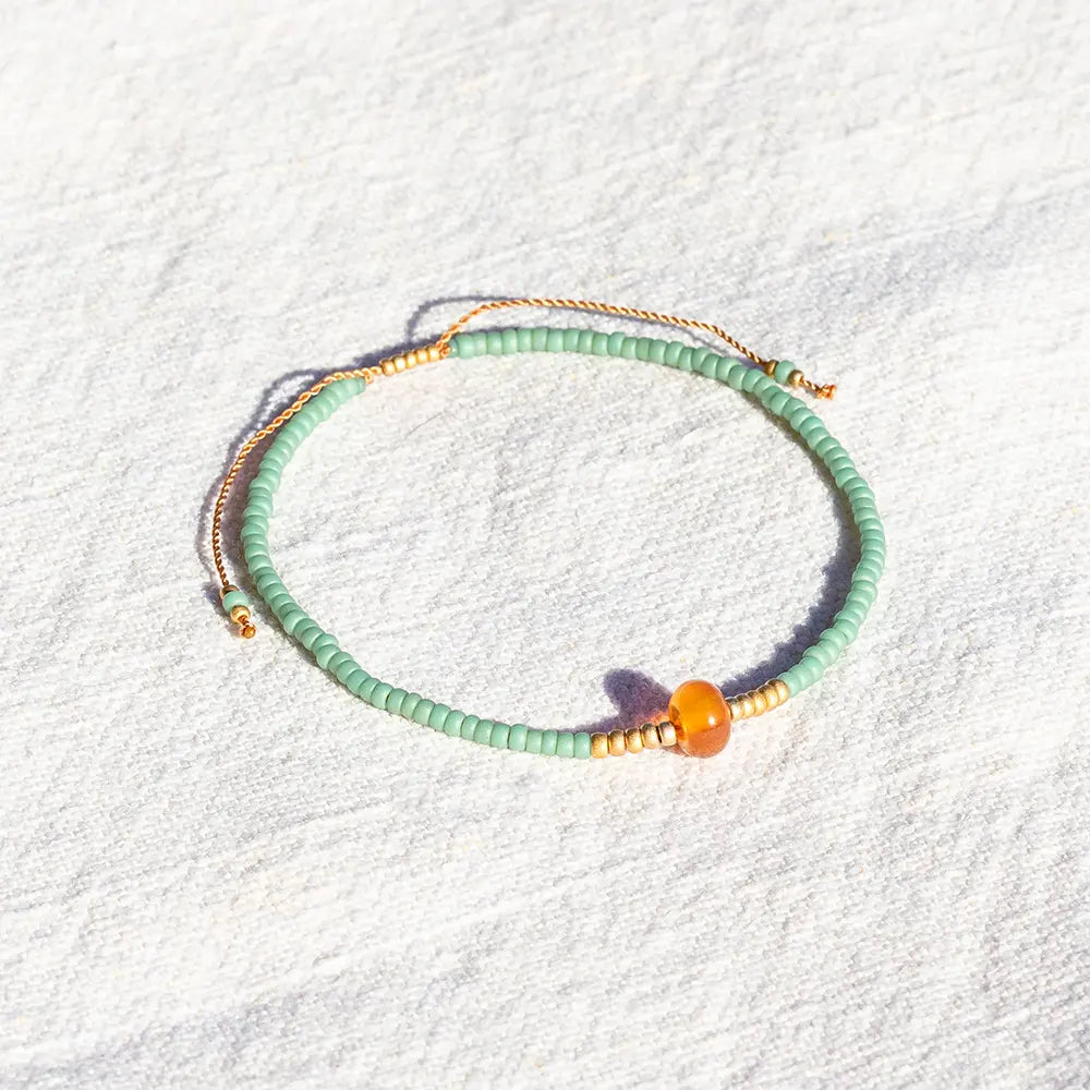 De aventurijn heeft een perfect herfstige, knusse kleur. De gouden kralen halen dit nog extra naar boven.