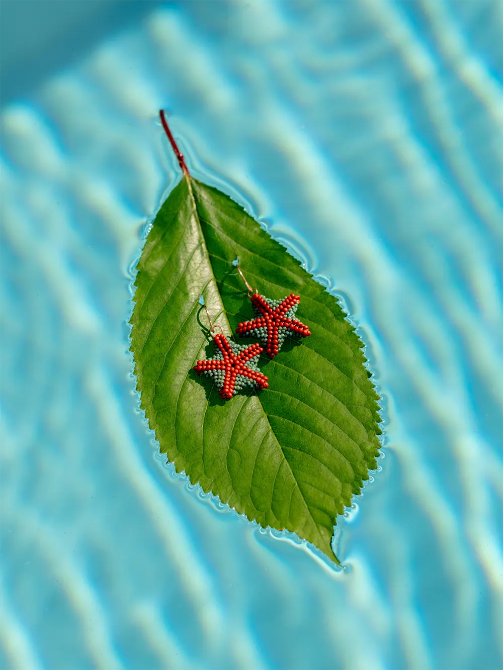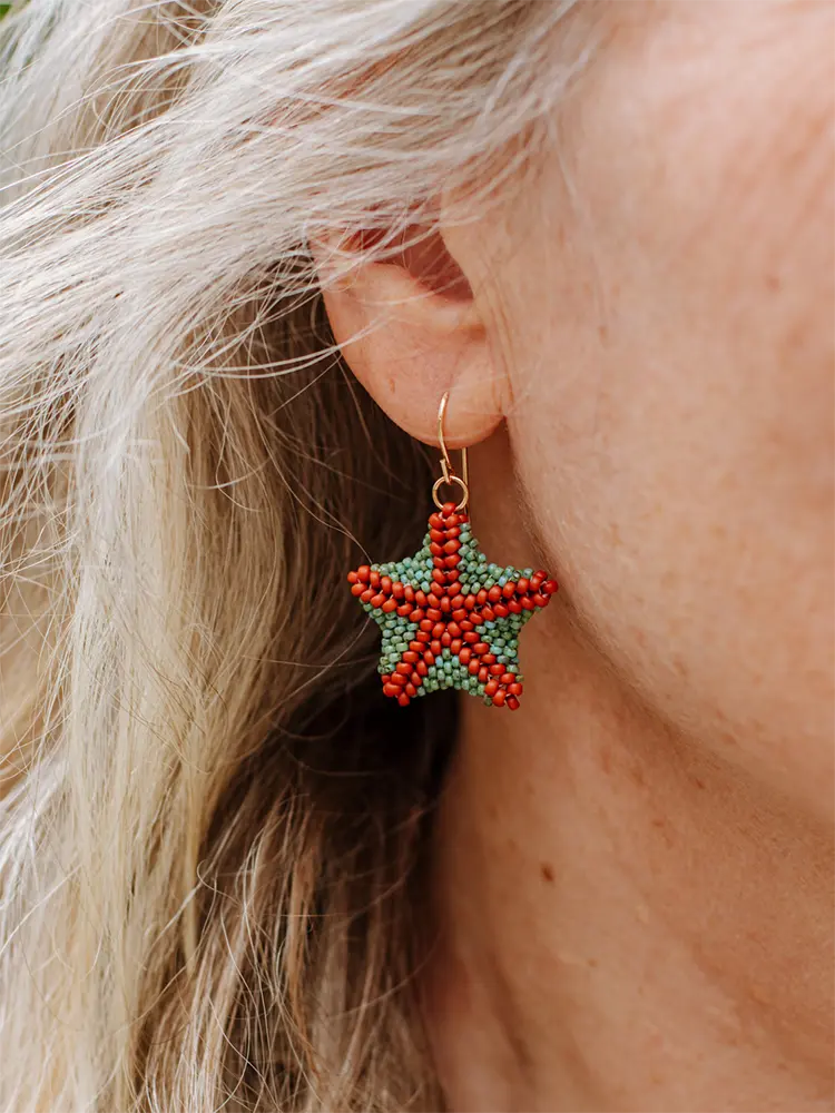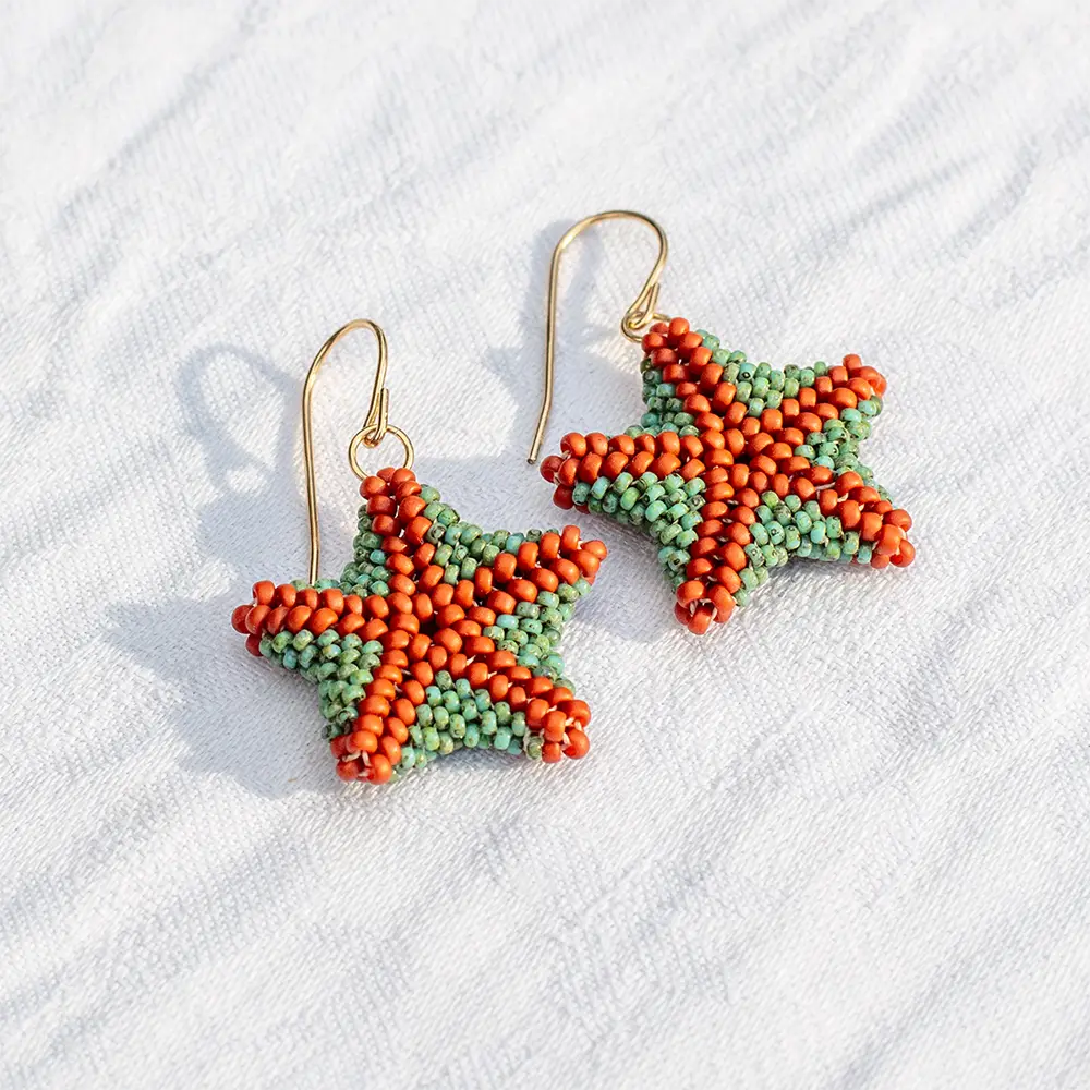 Superleuke en unieke oorbellen. Een vorm die doet denken aan zeesterren en zee-egels, gemaakt van een mooie kralencombinatie. Het oorhaakje is hoogwaardig gold-filled. De prijs is per paar.