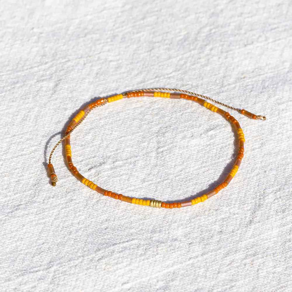 Superwarme kleuren en een subtiel messing accent geven deze armband een knusse uitstraling.