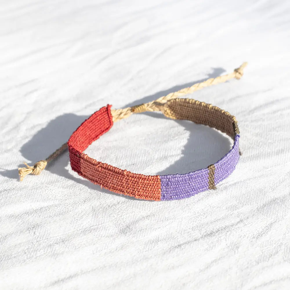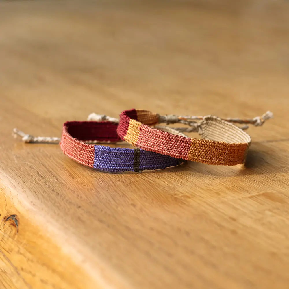 Deze armbandjes zijn gemaakt van hoogwaardig katoen- en linnengaren en geweven in verschillende patronen en kleurstellingen. Elke draad wordt één voor één geweven, een lang en nauwkeurig proces wat je terugziet in de mooie kwaliteit.