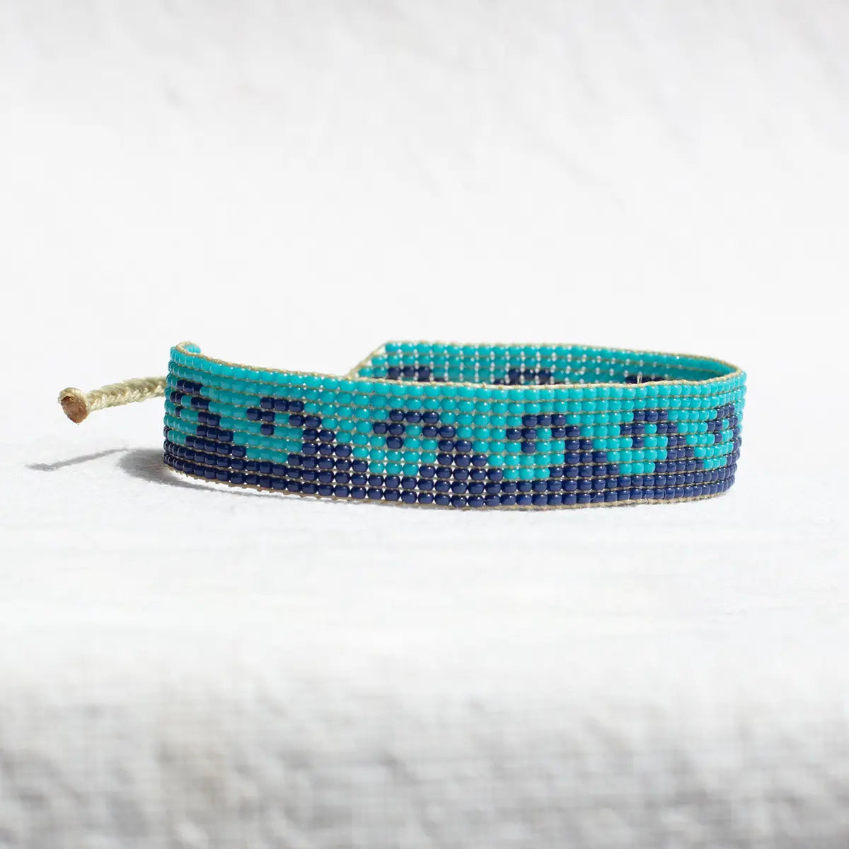 Schitterend geweven armbandje. Begin de zomer met dit golvende patroon.