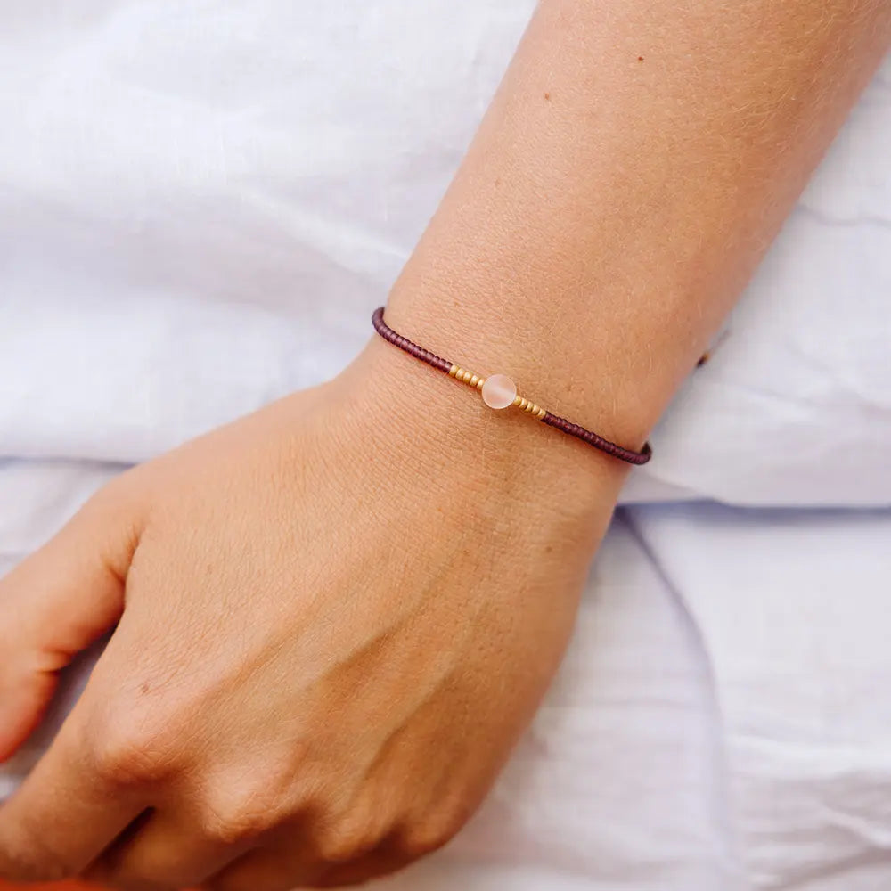 Warme paarse kralen geven de cherry kwarts alle ruimte om te stralen.