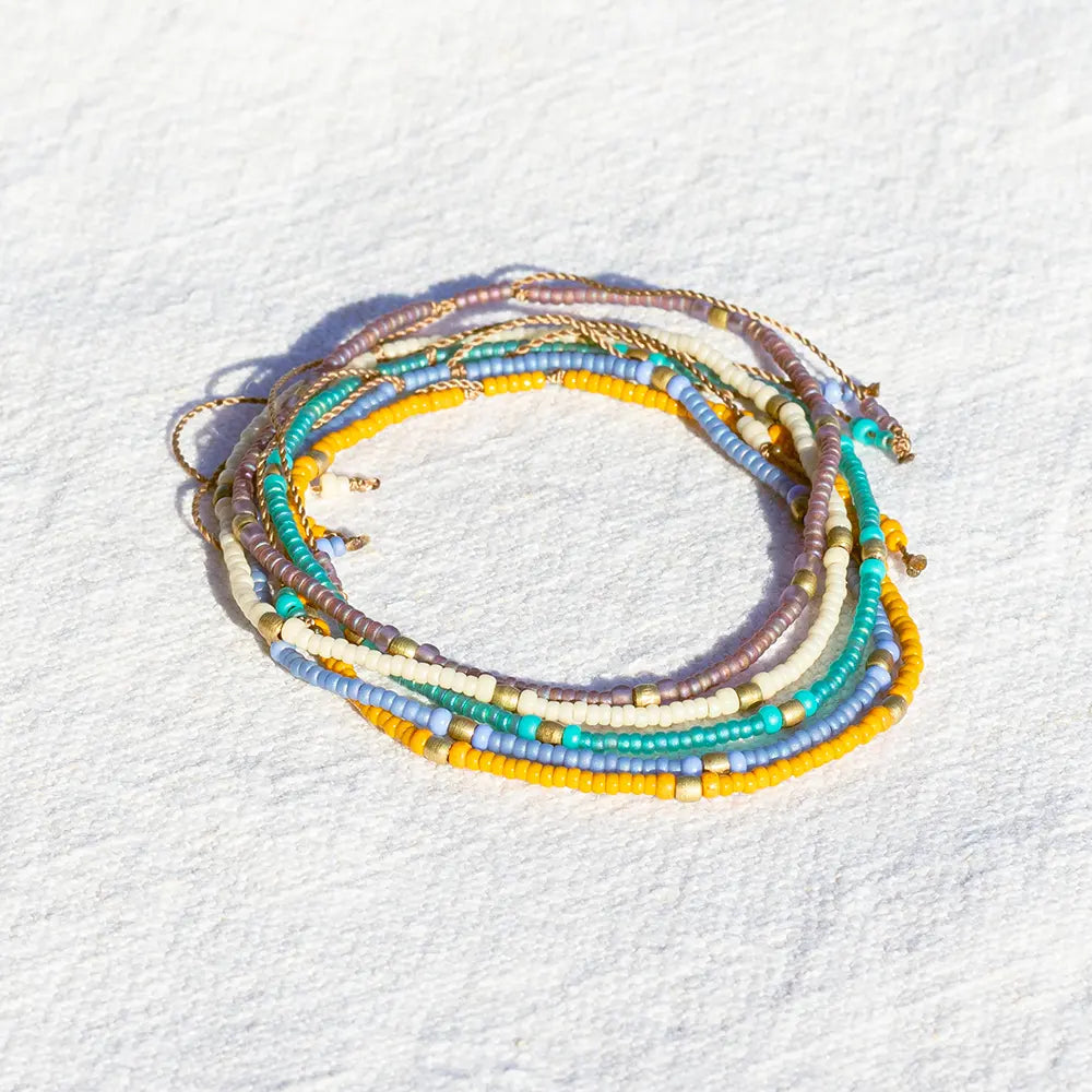 Al onze armbandjes zijn ongeveer 16 centimeter lang en je kunt ze omdoen door de touwtjes uit en in elkaar te schuiven. In principe is het dus ‘one size fits all’.