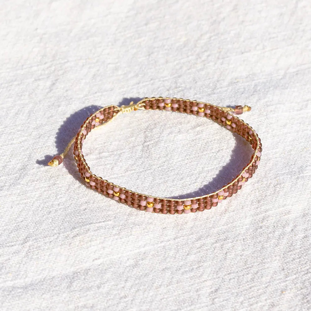 Schitterend geweven armbandje. De verschillende kralen hebben elk een unieke afwerking en combineren daardoor heel mooi.