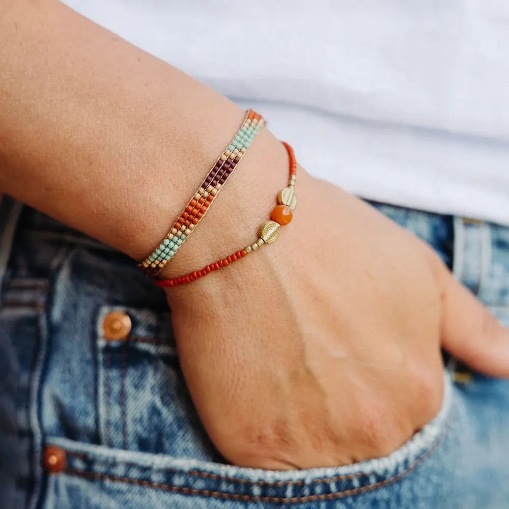 Schitterend geweven armbandje met subtiele en aardse kleuren.